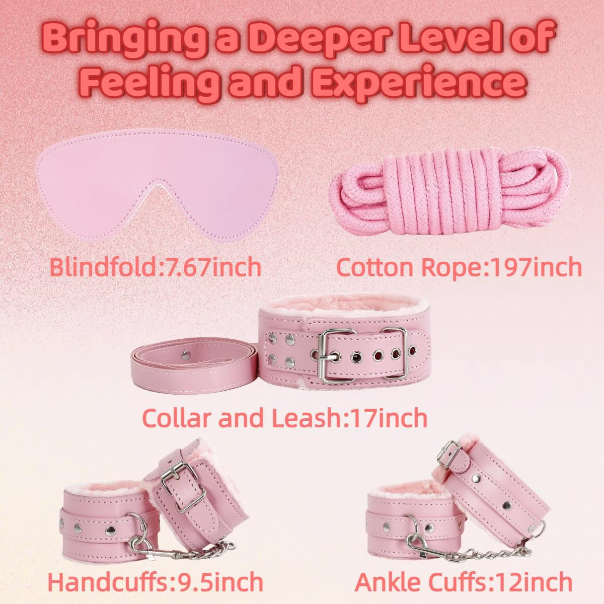 Every element in this collection is crafted from body-safe materials with adjustable features to ensure perfect fit and comfort. The soft restraints provide secure hold without discomfort, while the sensory tools allow you to explore new dimensions of pleasure at your own pace. The included rope and accessories expand your possibilities for creative play.