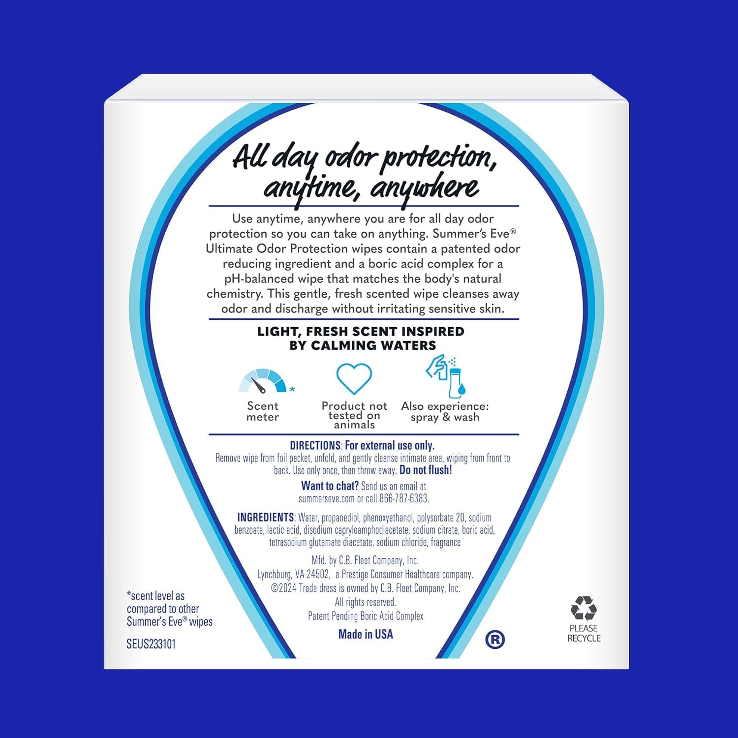 Introducing SUMMER'S EVE ULTIMATE ODOR PROTECTION, a revolutionary approach to intimate freshness. These individually wrapped feminine wipes combine advanced boric acid technology with a gentle, pH-balanced formula to deliver uncompromising odor protection and all-day confidence.